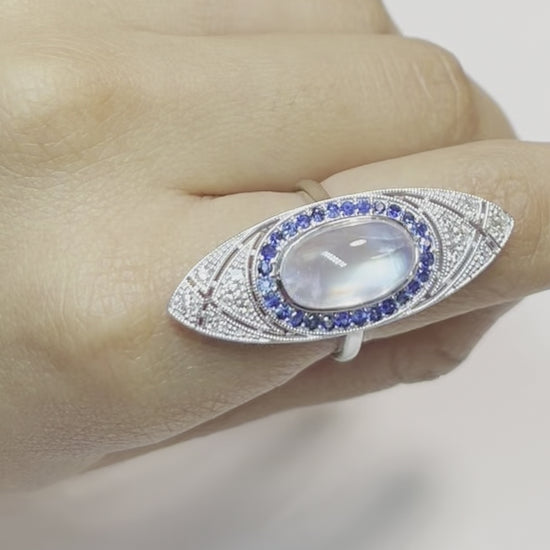 Antique Moonstone & Diamond Navette Ring