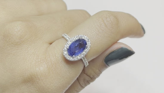 Oval Blue Sapphire Diamond Halo Ring