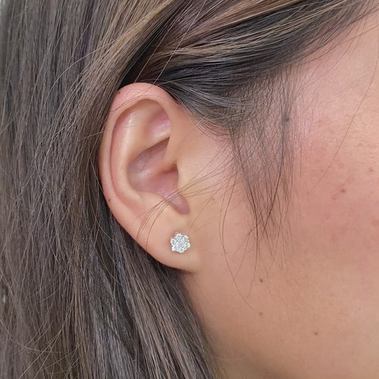 0.50CT Lab-Grown Diamond Sterling Silver Flower Earrings