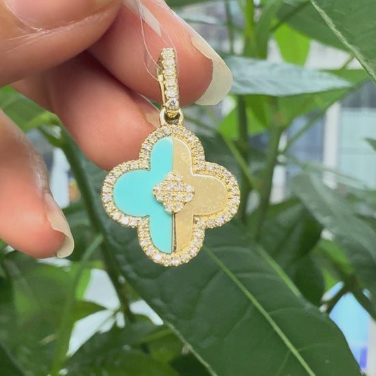14KT Yello Gold Turquoise & DIa Colver Pendant